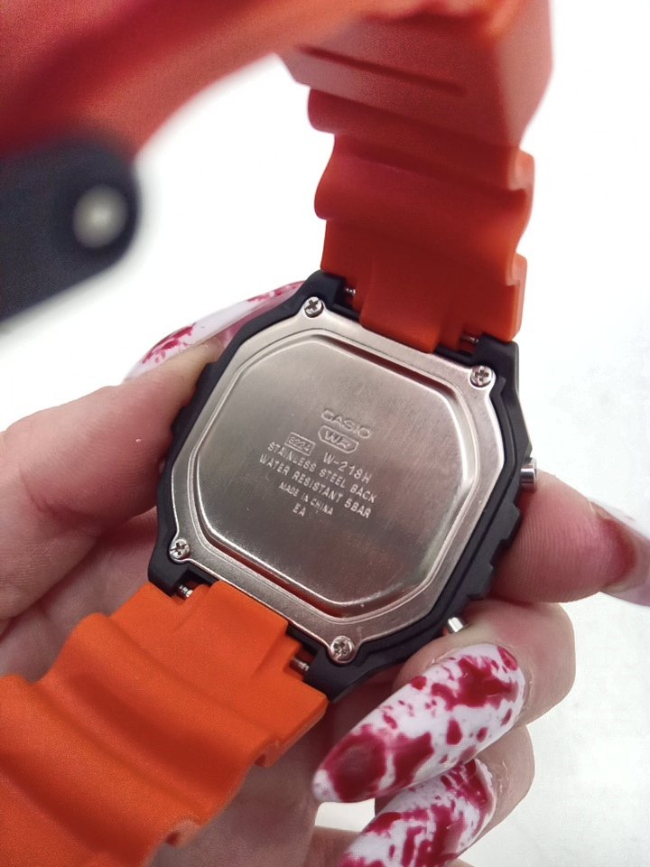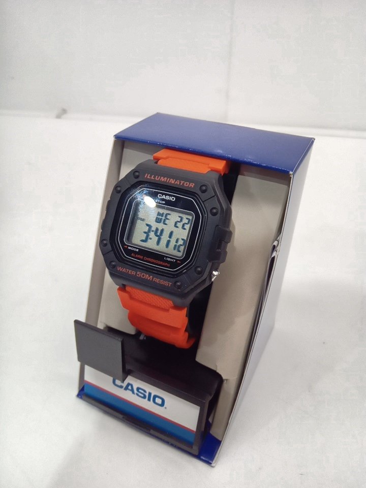 men's casio illuminator resin strap digital wrist watch -43mm- orange (model:w-218h-4bvdf)