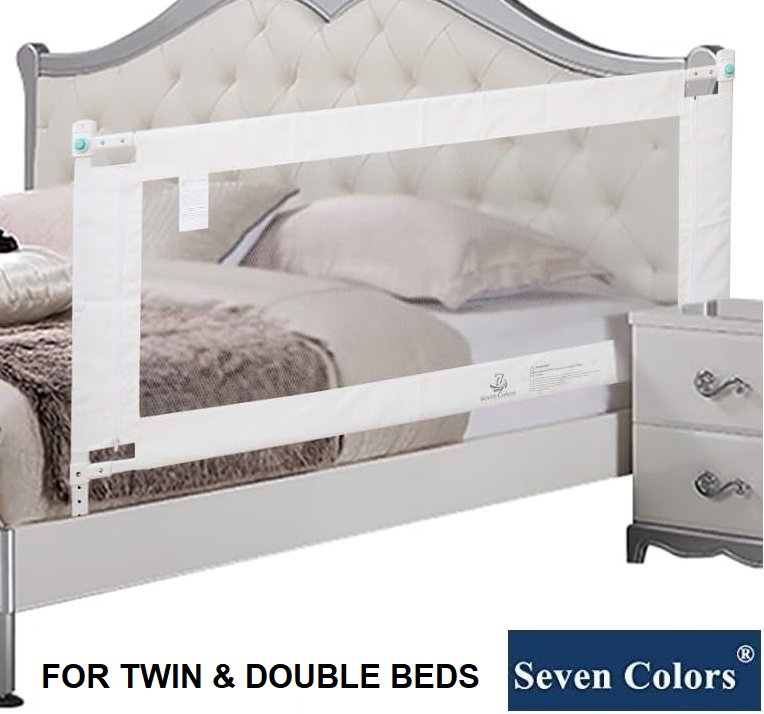 SEVEN COLORS BED RAIL FOR TODDLERS - EXTRA LONG RAIL FOR TWIN & DOUBLE BEDS - CHILD / BABY GUARD EXTRA TALL SAFETY RAIL - WHITE (MODEL: SC-G-02T)