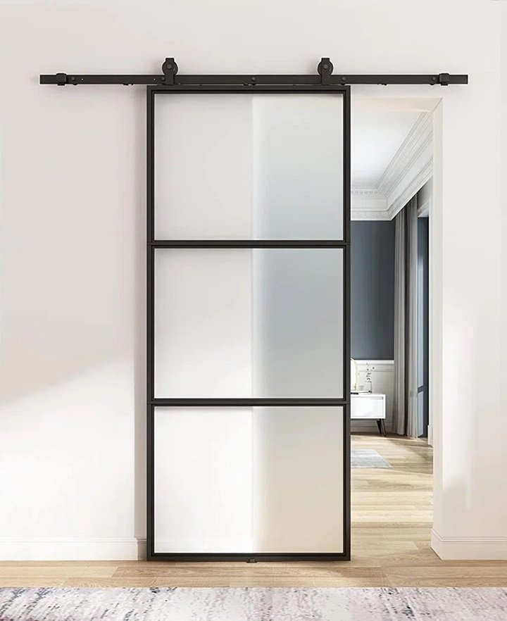 JUBEST Sliding Glass Barn Door with Installation Hardware - 36" X 84" - GREEN/FROSTED GLASS(MODEL: TKM02N-F-30IN+TSQ14BK-5FT)