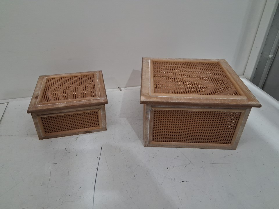 2PC Decor square rattan boxes - 10" x 5.5" - 8" x 4.3" - Brown/white/beige