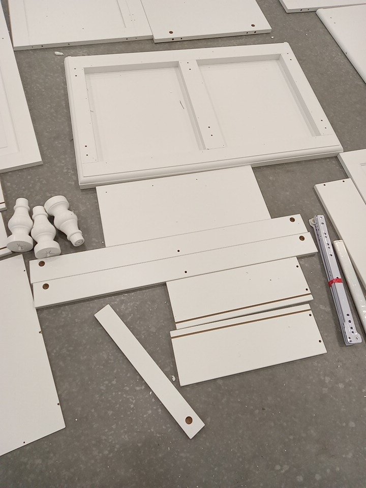one of the small drawers front was broken, and there are only three legs instead of four. please see photos