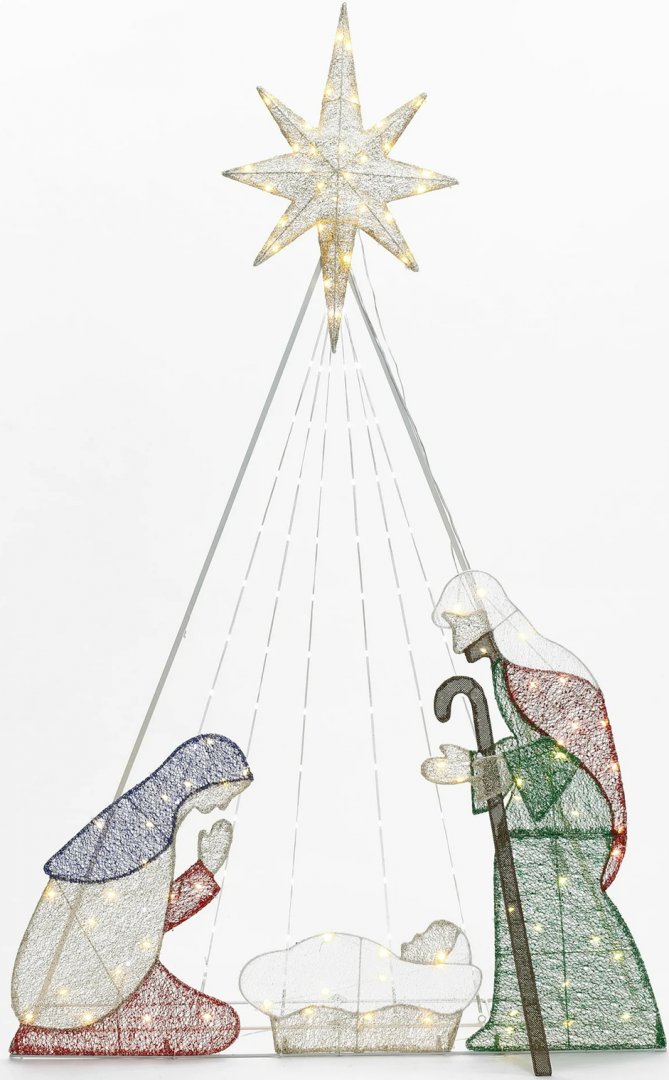 LuxenHome light up nativity set and Christmas tree decoration for outdoors - multi colour