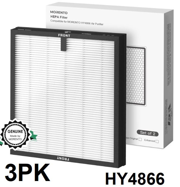 3PK MORENTO Genuine Air Purifier Replacement Filter for HY4866 - 12.2" x 10.6" x 2.6"
