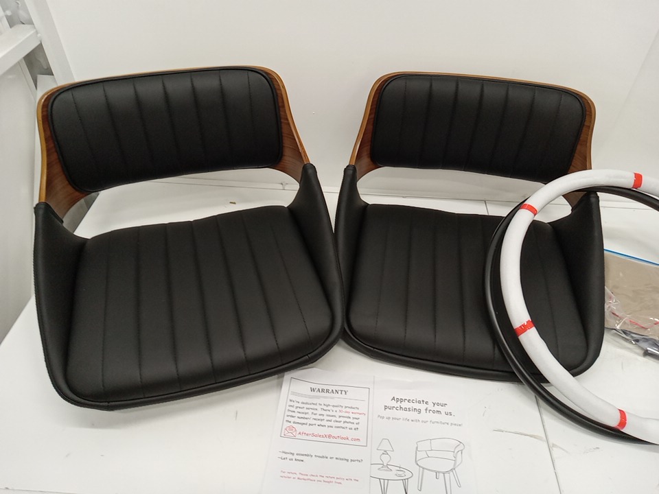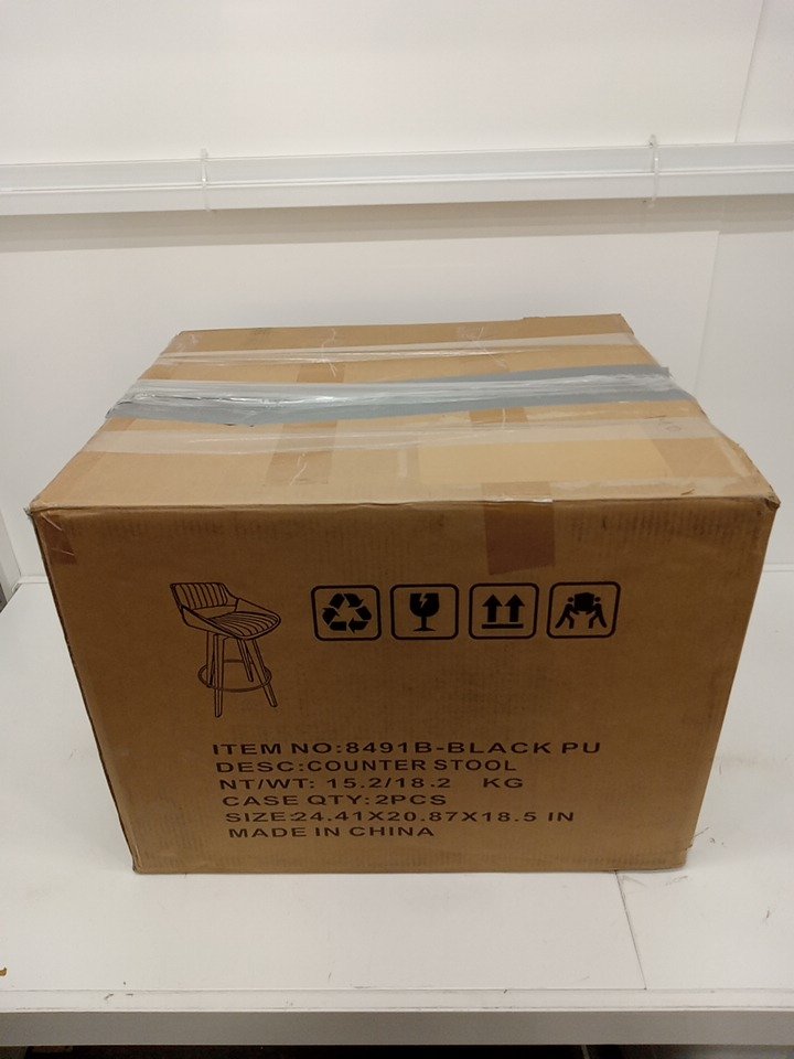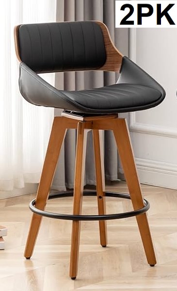 2pk LUNLING Swivel Bar Stools Mid Century Modern Faux Leather Upholstered Counter Height Barstools - 20" x 15.3" x 35.4" - BLACK (MODEL: 8491B-BLACKPU)