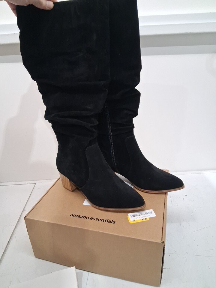 women's amazon essentials tall block heel boots - size 10 wide calf - black