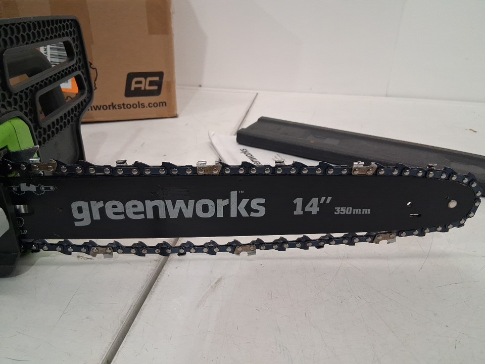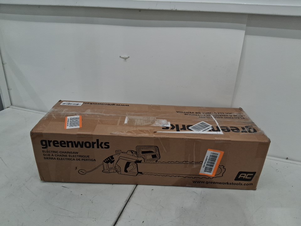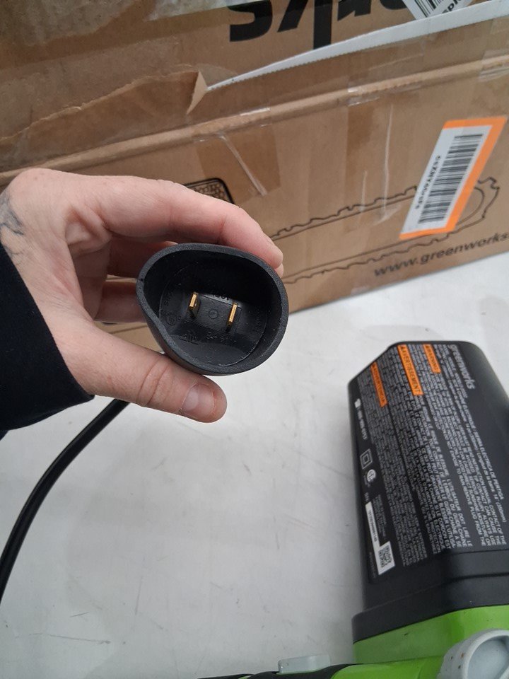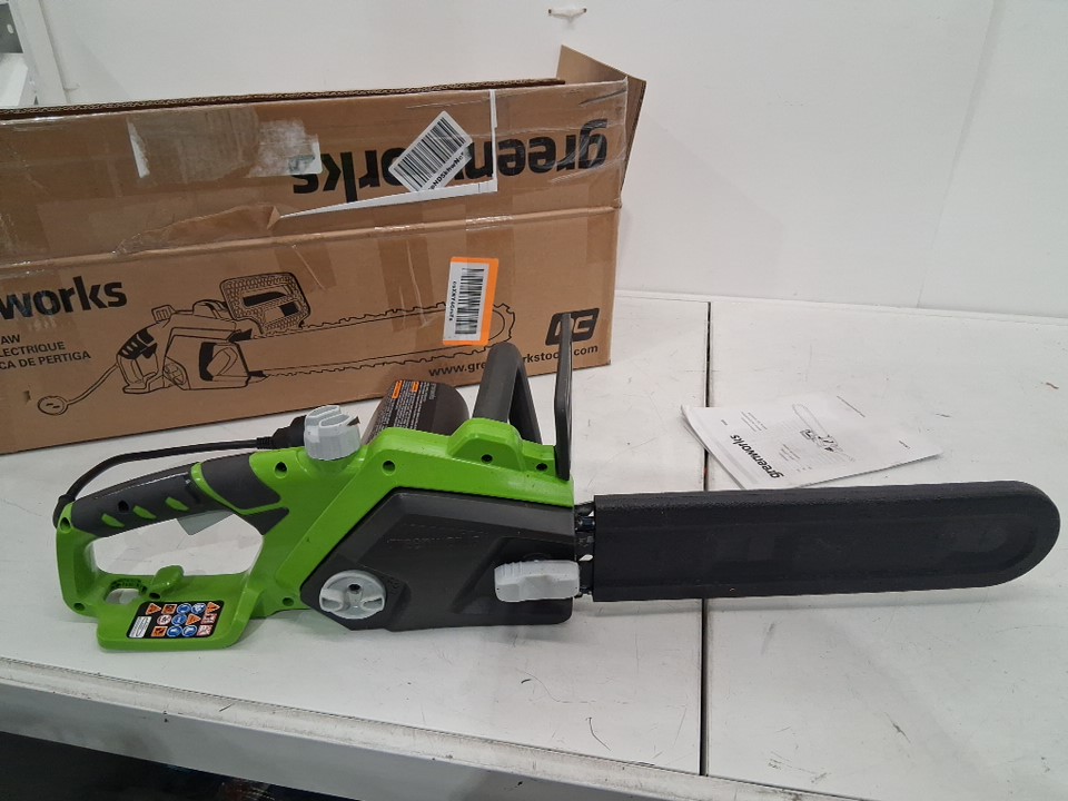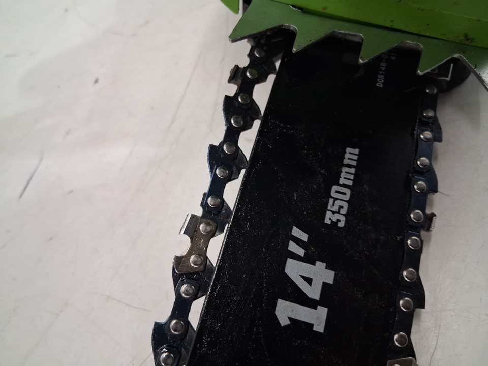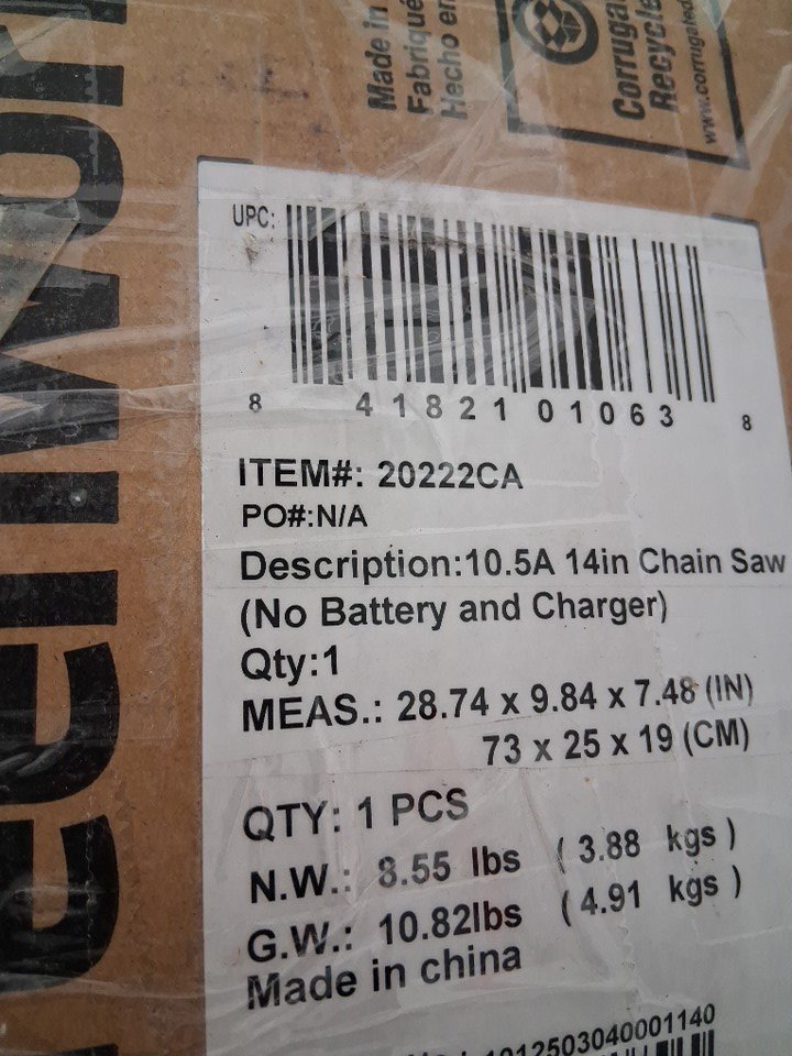 Chainsaw has dirt discoloration on it, plug casing is slightly warped. and chain has debris on it. Chain is off track and is jammed inside of chainsaw, can be fixed or replaced with new chain. Has been tested for power (no indicator light)