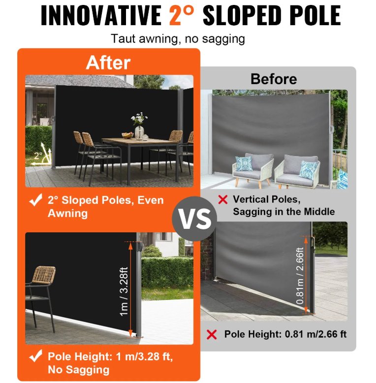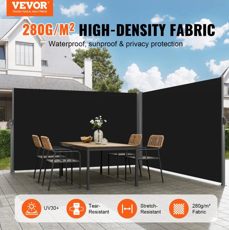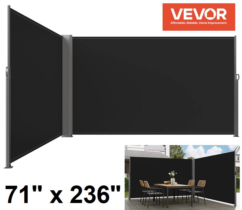 VEVOR Retractable Side Awning, WATERPROOF POLYESTER OUTDOOR ALUMINUM PRIVACY SCREEN - 71" X 236" - GREY/BLACK (MODEL: H033-2)