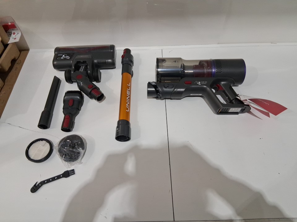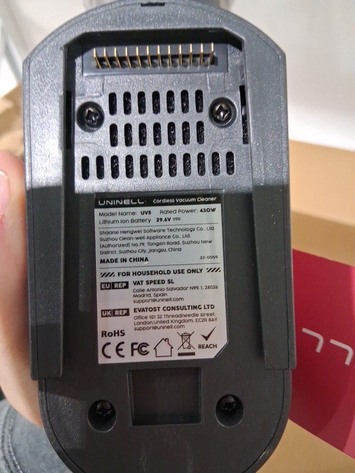 Item does not have the battery or battery charger, it is the vacuum only. replacement parts are available online. https://www.amazon.ca/UNINELL-HOME-UV5-Cordless-Replacement/dp/B0DQWRDGC1 Item has some dirt in the dirt bin, and some in the filter, the roller also has dirt in it