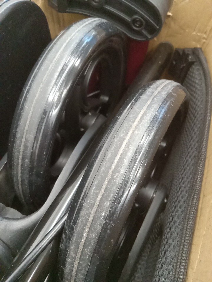 Item shows signs of previous use such as light dust/debris on two of the wheels.