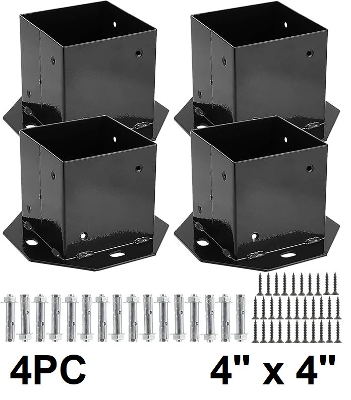 4pc kaizeoohaus heavy duty post base brackets - 4" x 4" - black
