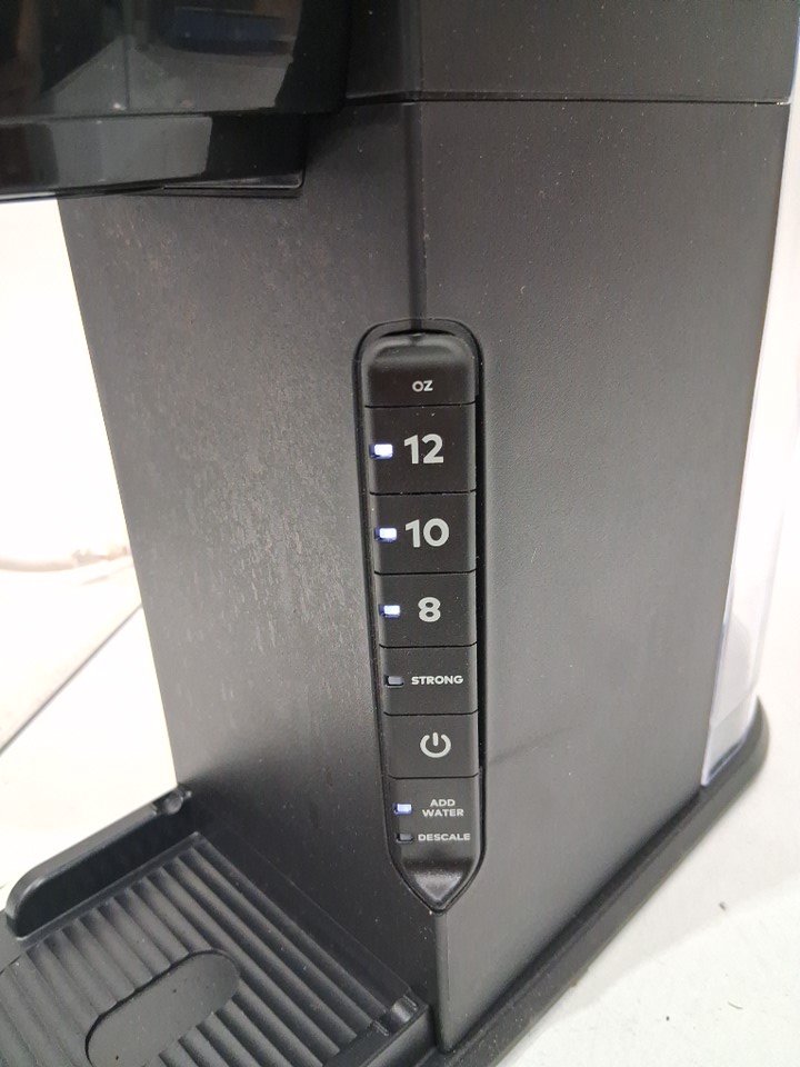 Item shows signs of previous use such as coffee grounds in cup area and water markings in water tank. Item tested for power.