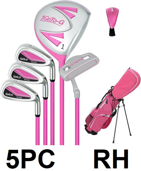 5PC JUNIORS YOUTH 1TOGO-G GOLF CLUB SET WITH SANDBAG - RIGHT HAND - PINK/SILVER
