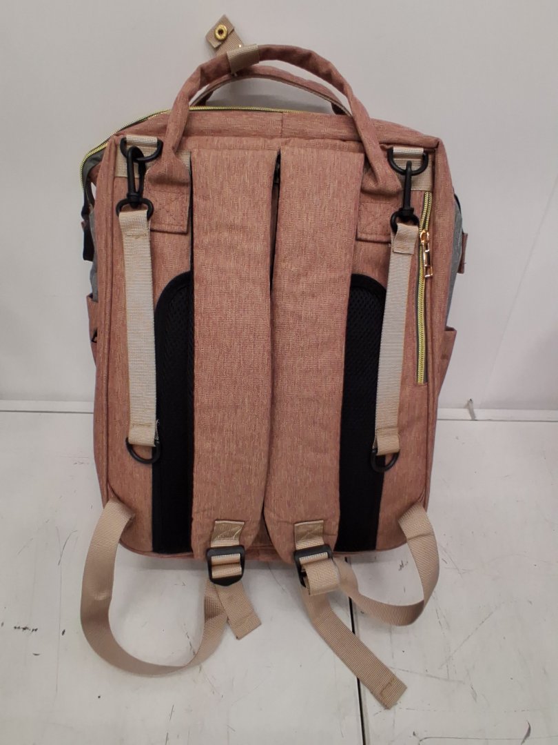BABIES 3-IN-1 land travelling share diaper bag AND MINI PLAYPEN- 12" X 8" X 16"- PINK/GREY