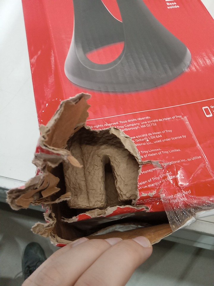 Hole in the corner but product is likely still okay as it is packaged securely.