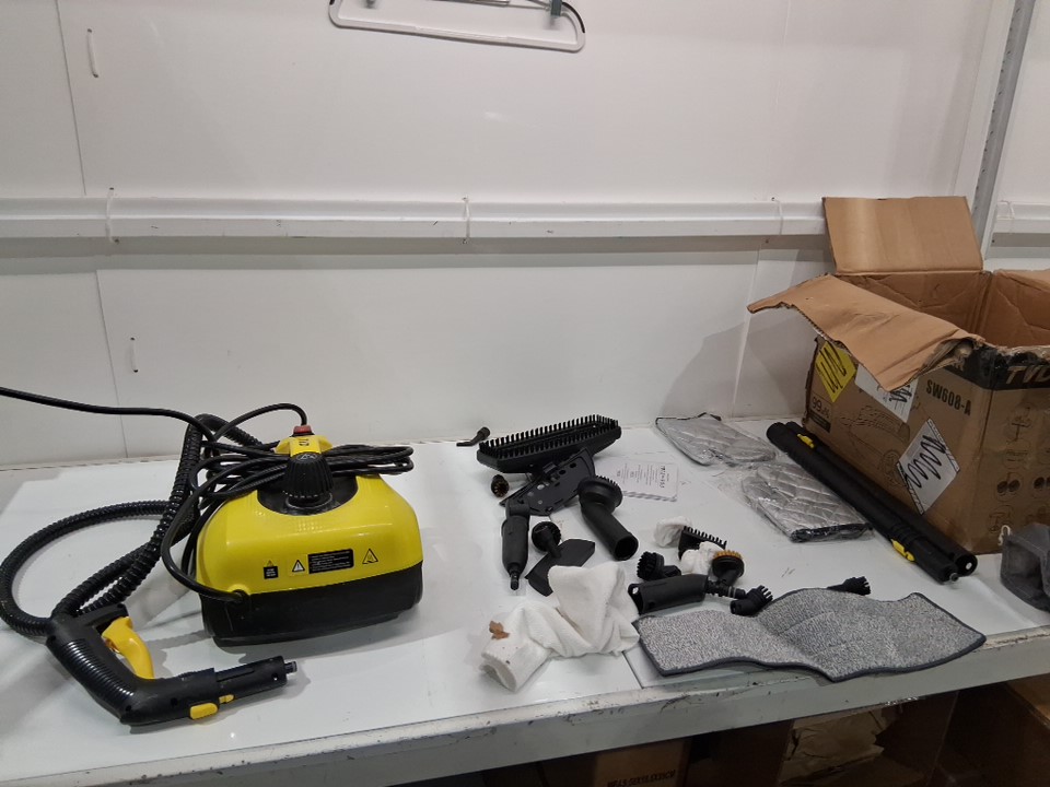 There are some scuffs, scratches, stains and marks on the item, there is also water residue inside of it, clean before use. Tested for power only.