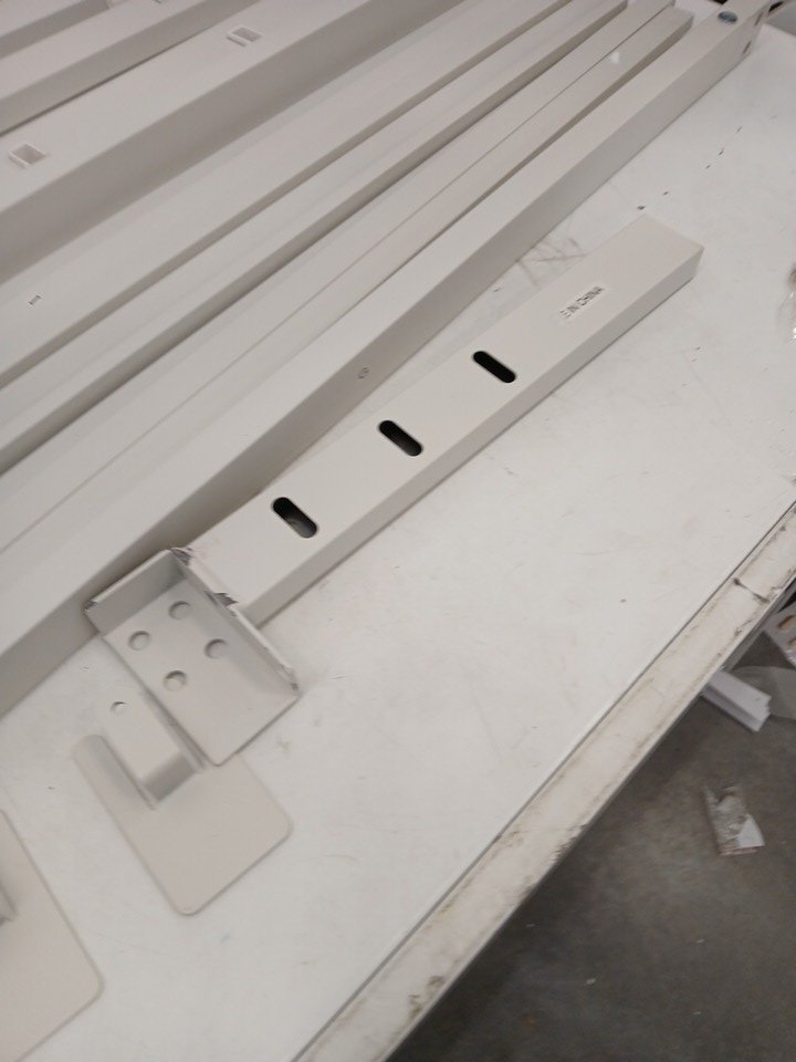 Please note there is a presence of scuffs at connecting points of the bed frame, indicating prior installation. See photos attached. Additional generic hardware will likely be required for installation.