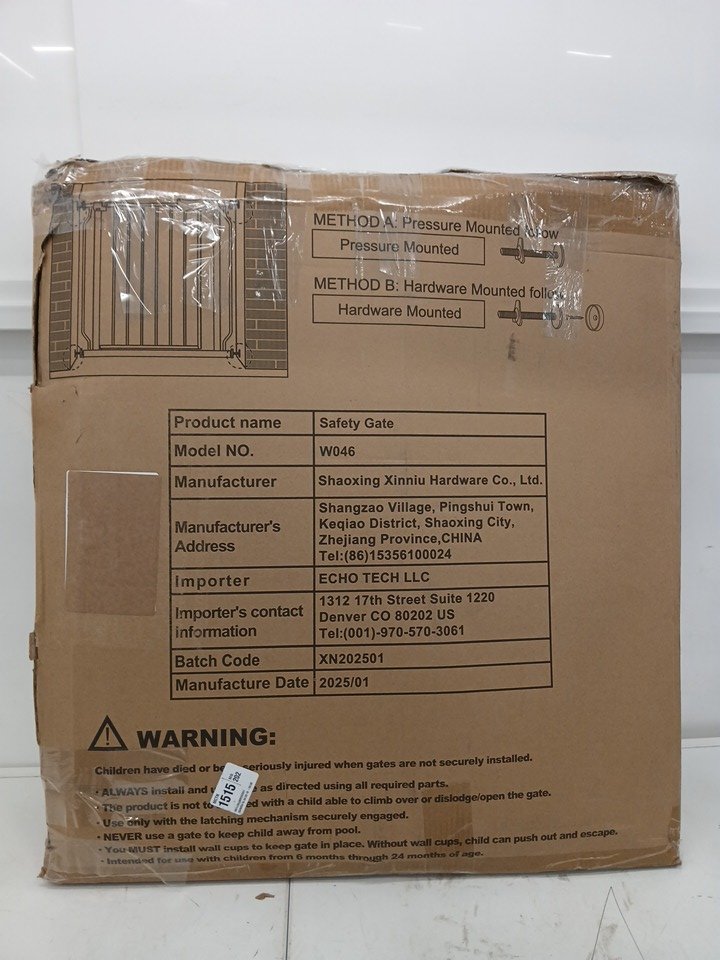 WAOWAO EXTRA WIDE PRESSURE MOUNT WALK THROUGH SWING AUTO CLOSE SAFETY BABY GATE - 38.58" - 43.31" - BLACK (MODEL: W046)