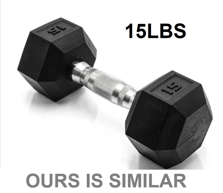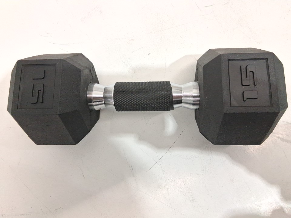 RUBBER ENCASED CAST IRON HEX DUMBBELL - 15LBS - BLACK