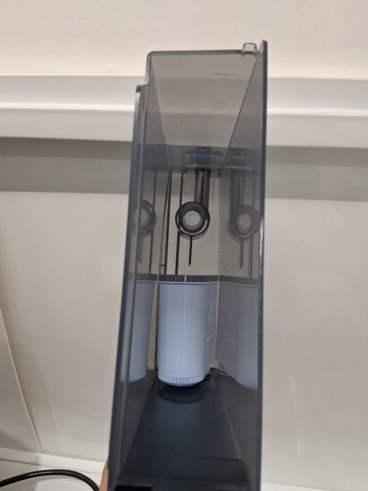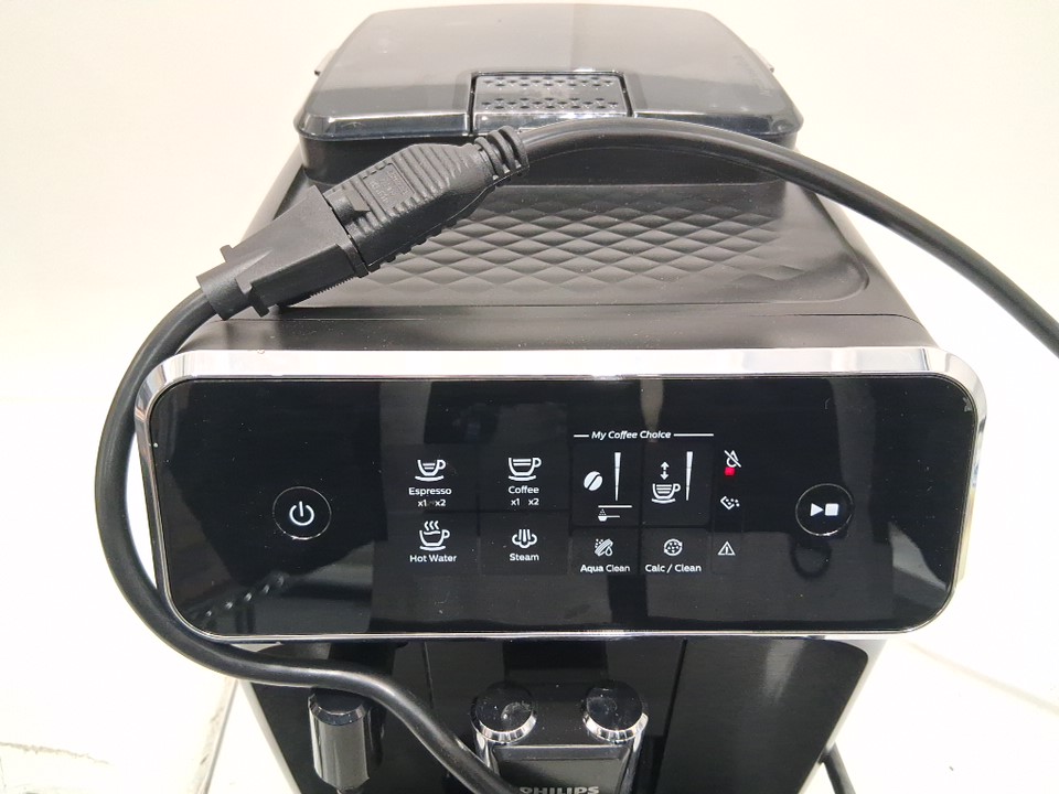 Minor coffee grounds debris throughout machine, light residue markings on the spout/frother, see photos. tested for power