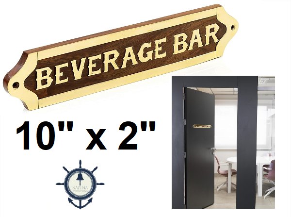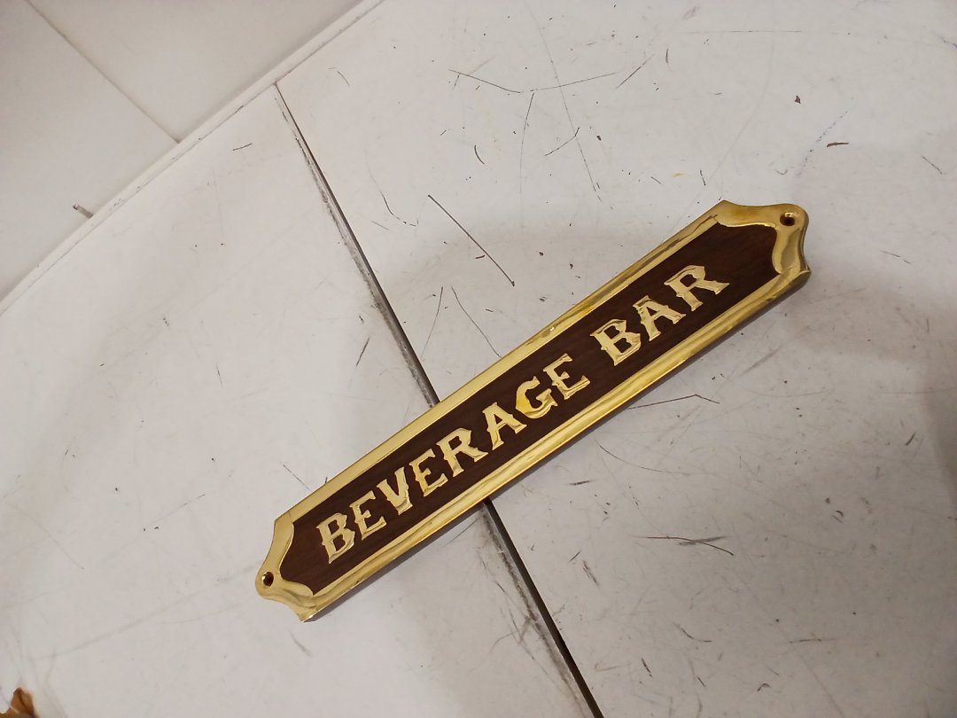 nagina international Wooden Sign Plaque Board - ' beverage bar' - brown/brass