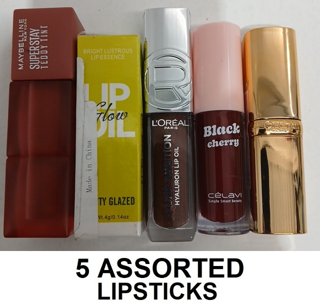 5 assorted lipstick - ASSORTED COLORS, BRANDS and sizes