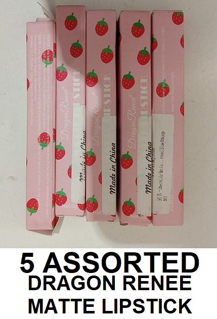 5 assorted dragon renee travel size matte lipstick - assorted shades