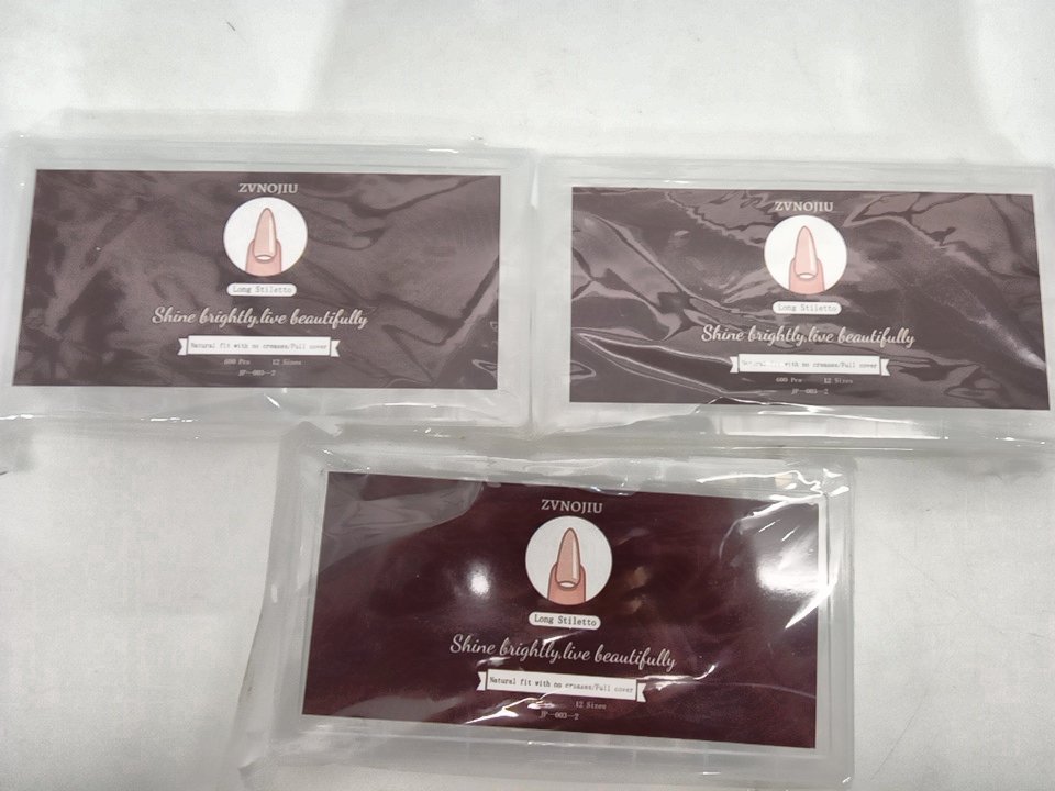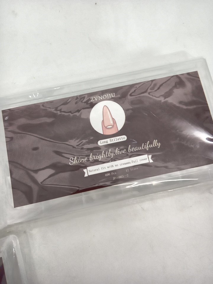 3 (600pc) zvnojiu shine bright long stiletto natural fit with no creases/full cover false nails - 12 assorted sizes