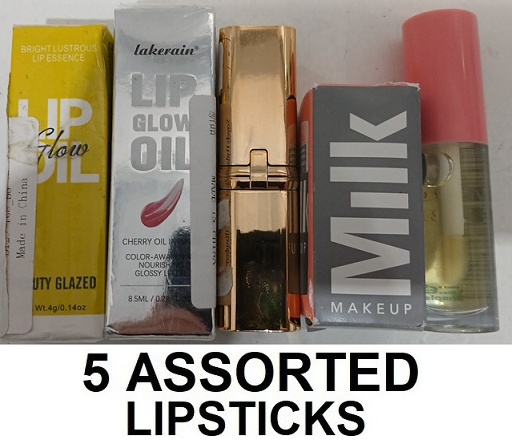 5 assorted lipstick - ASSORTED COLORS, BRANDS and sizes