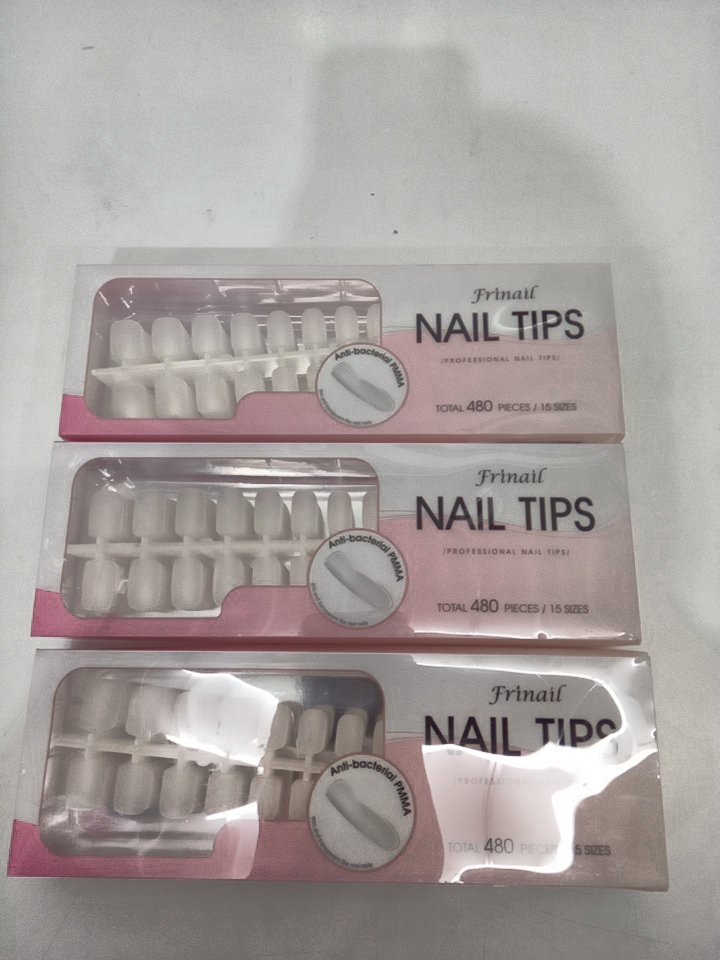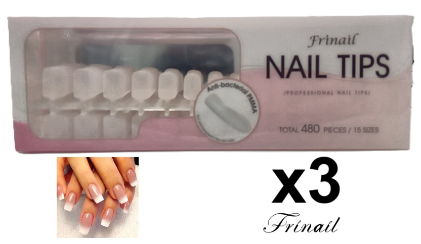 3 (480pc) frinail professional nail tips - 15 assorted sizes - square shape