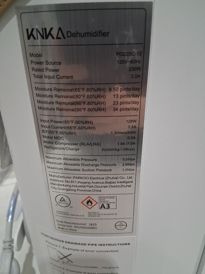 KNKA Dehumidifier for Basement with Drain Hose - 2500SQFT - WHITE (MODEL: pd22sc-12)