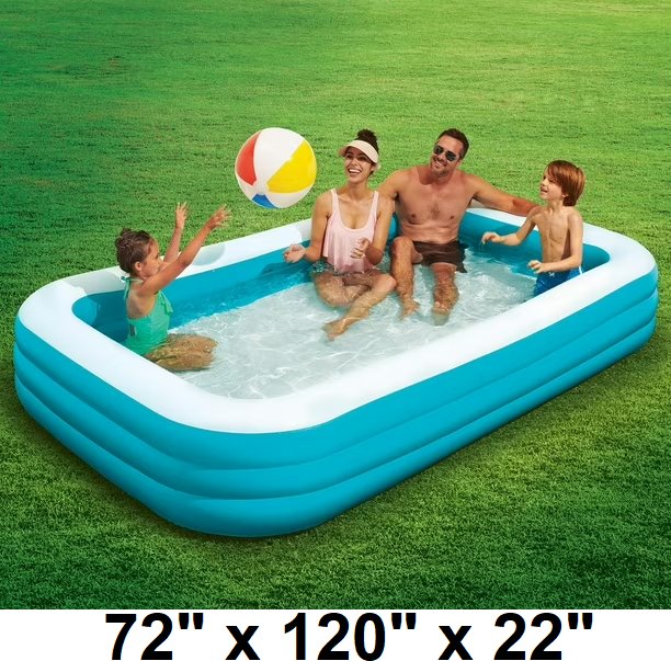 Bluescape Blue Inflatable rectangular Family Pool - 72" x 120" x 22" - BLUE/WHITE