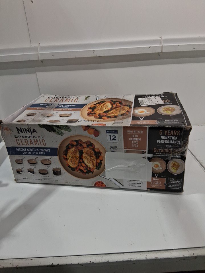 12PC Ninja Ceramic Extended Life NONSTICK Cookware Set - BLACK/BROWN (MODEL:CW89900)