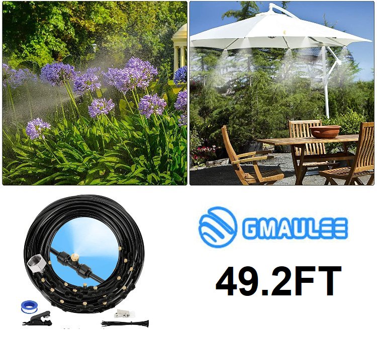 GMAULEE DIY WATER COOLING SYSTEM MISTING LINE WITH BRASS MIST NOZZLES AND A BRASS CONNECTOR(3/4'') - 49.2FT