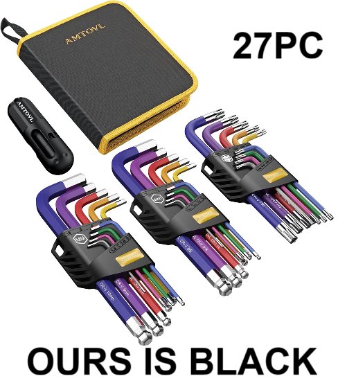 27PC AMTOVL Allen Wrench Key SeT with grip handle METRIC & SAE SIZE - black/yellow