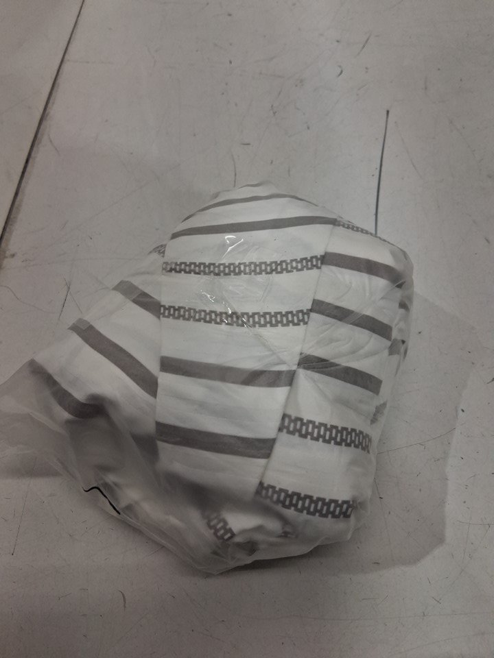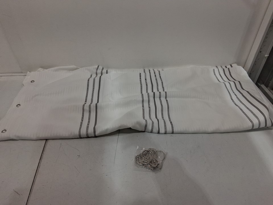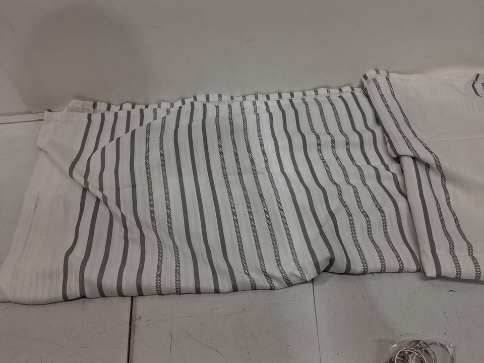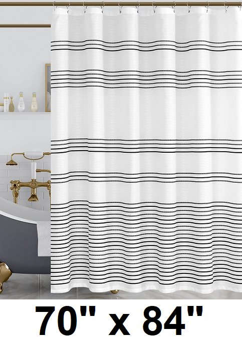 Extra long shower curtain waterproof fabric - 70" x 84" - White/grey stripe