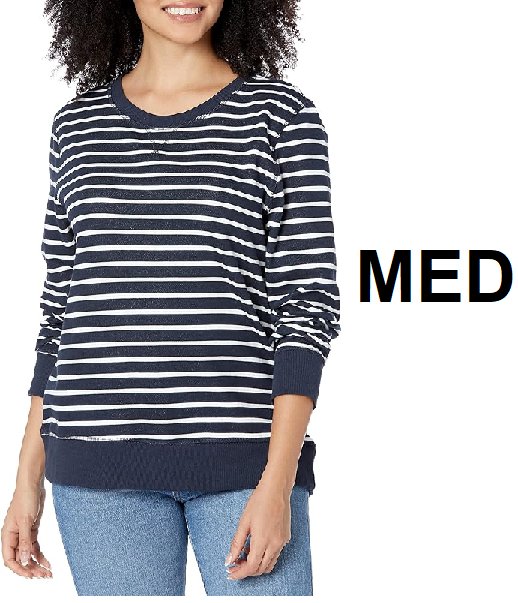 Women's Amazon Essentials French Terry Fleece Crewneck Sweatshirt - Medium - blue/white (style: WAE50014FL18)