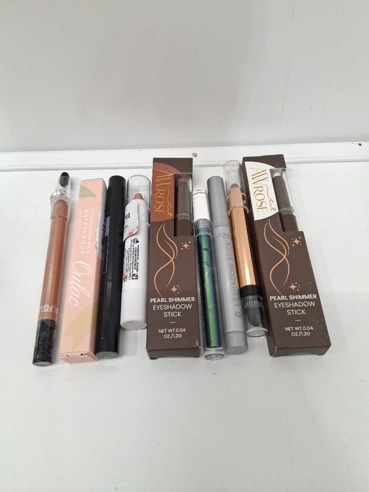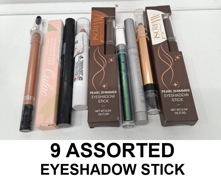 9 ASSORTED EYESHADOW STICKS - ASSORTED COLORS AND BRANDS