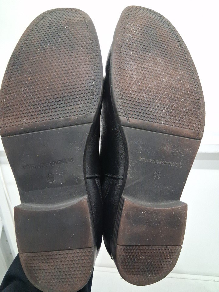 Discoloration on soles of both shoes indicate prior short-term use. (See photos)