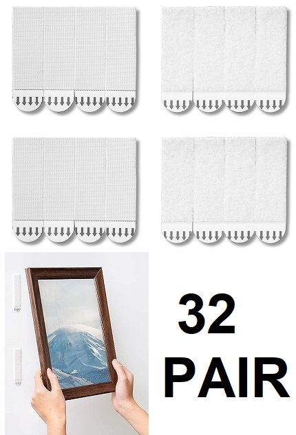 32-Pairs Picture Hanging Strips Hook and Loop Tape - MEDIUM (2.75" X 0.75") - WHITE