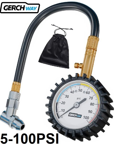 GERCHWAY ANALOG TIRE PRESSURE GAUGE - 5-100PSI - BLACK