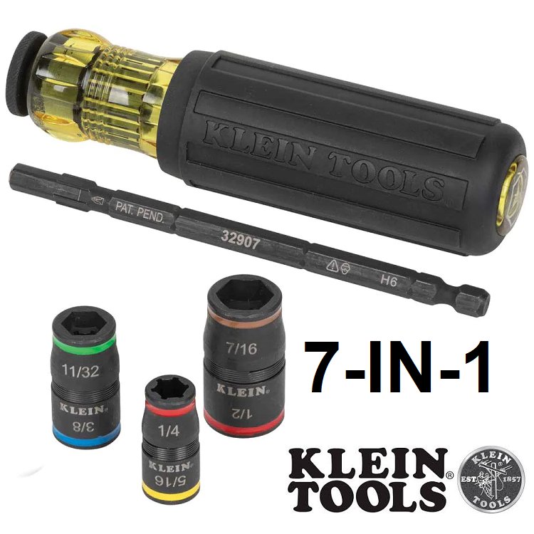 7-IN-1 Klein Tools Impact Flip Socket with Handle- Hex Impact Socket Set (MODEL: 32900R)