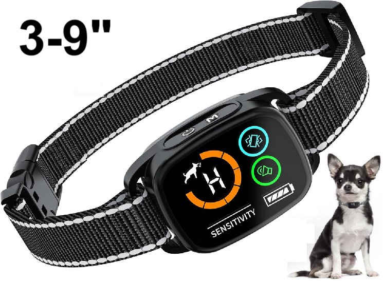 Pattesage waterproof Anti-bark Collar with 6 Adjustable Sensitivity and 3 Mode - 3-9" - black