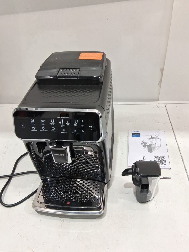 **Tested for power.** Item does not include an aquaclean filter, measuring scoop, water hardness test strip, or grease tube, see photos. Replacement aquaclean filters are available for purchase from Amazon (here: https://www.amazon.ca/Philips-Saeco-AquaClean-CA6903-10/dp/B08G3L9HT2).