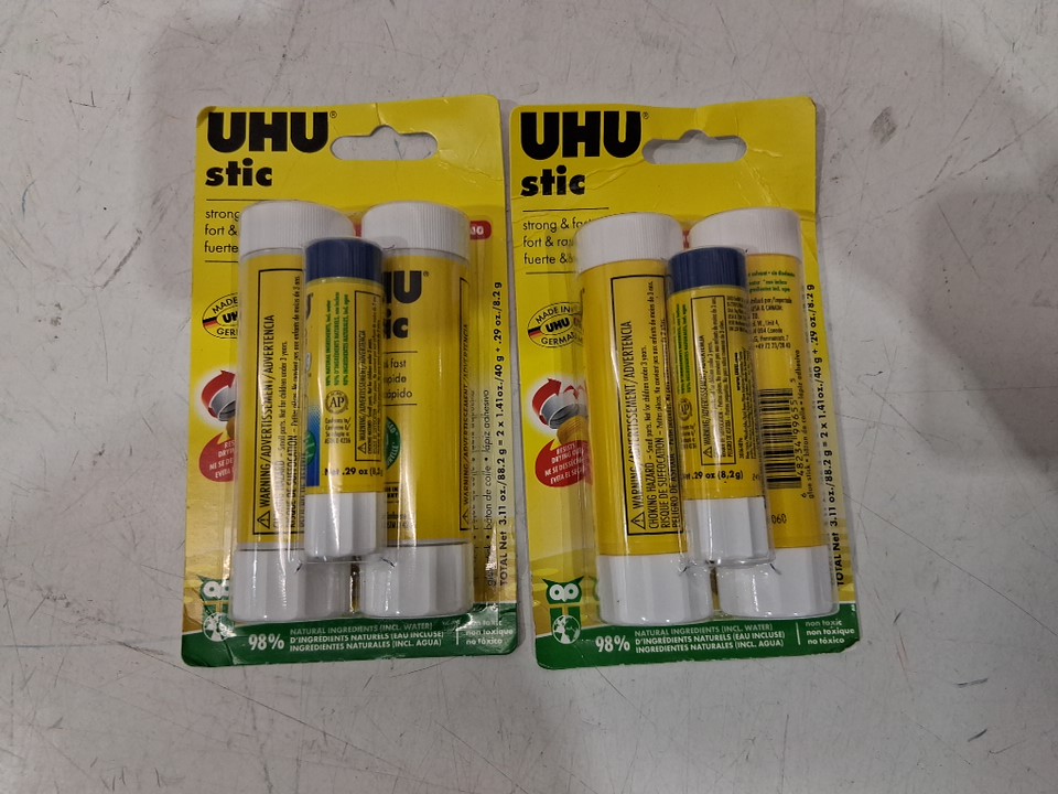 2 (3pc) UHU stick non-toxic Strong & fast glue stick (15 total) - includes small magic blue stick