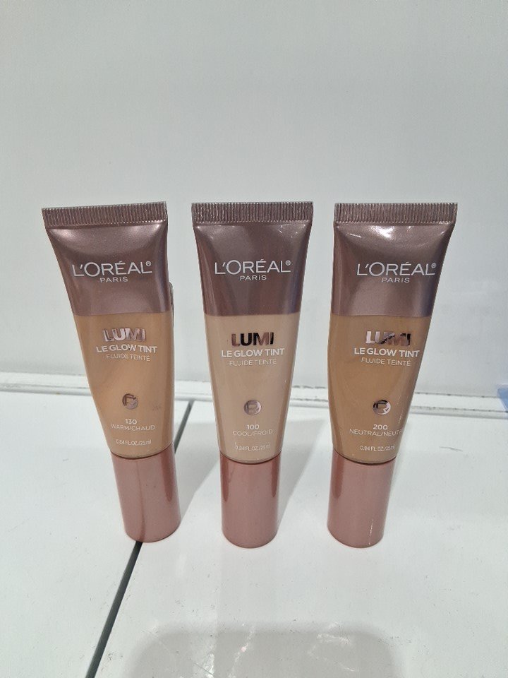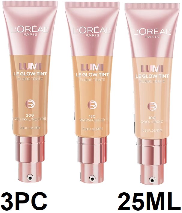 3PC L'OREAL LUMI LE GLOW TINT FOUNDATION - 25ML EACH - 100 COOL, 130 WARM & 200 NEUTRAL