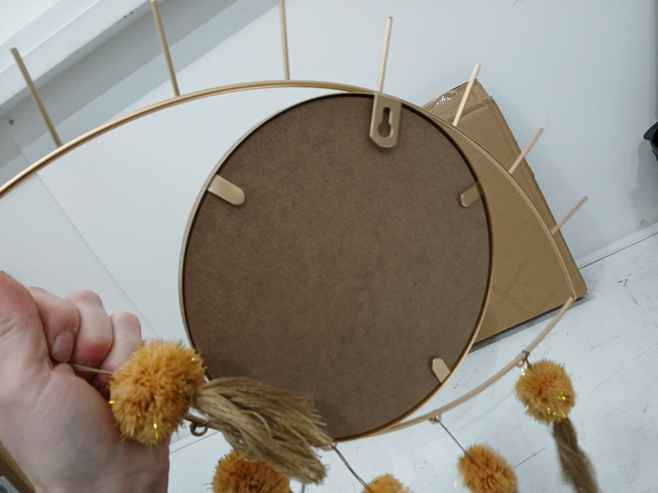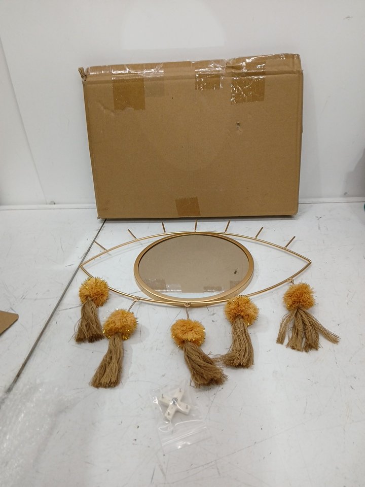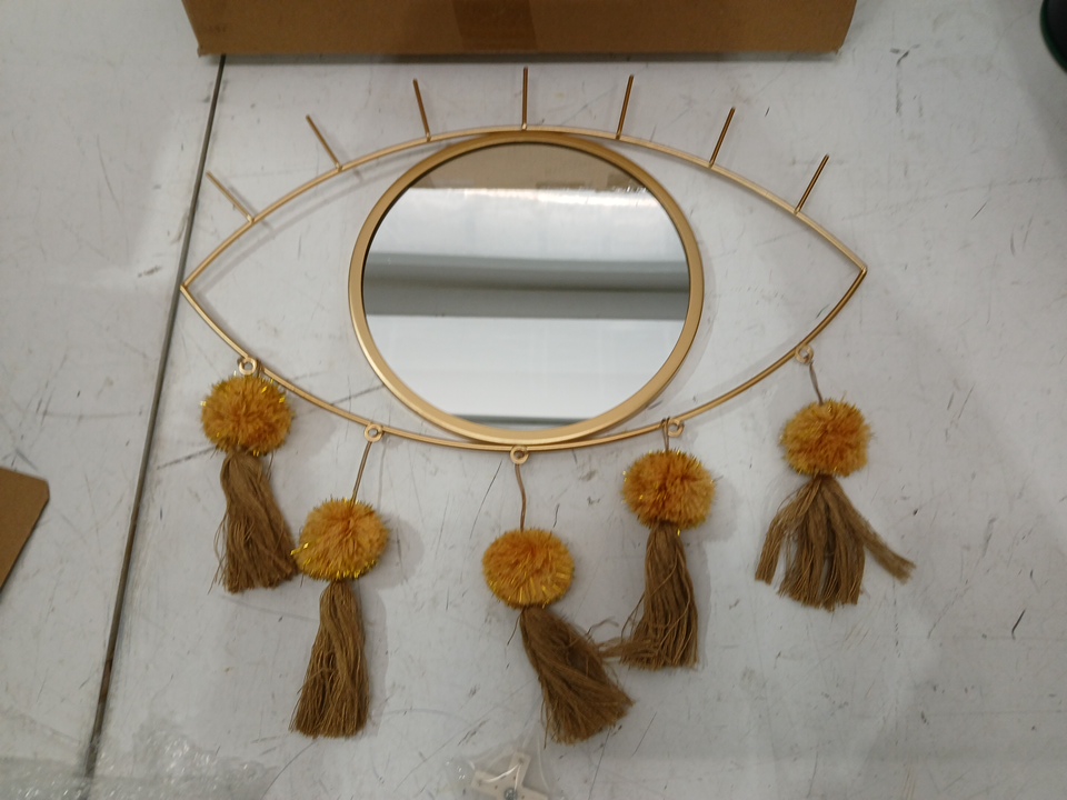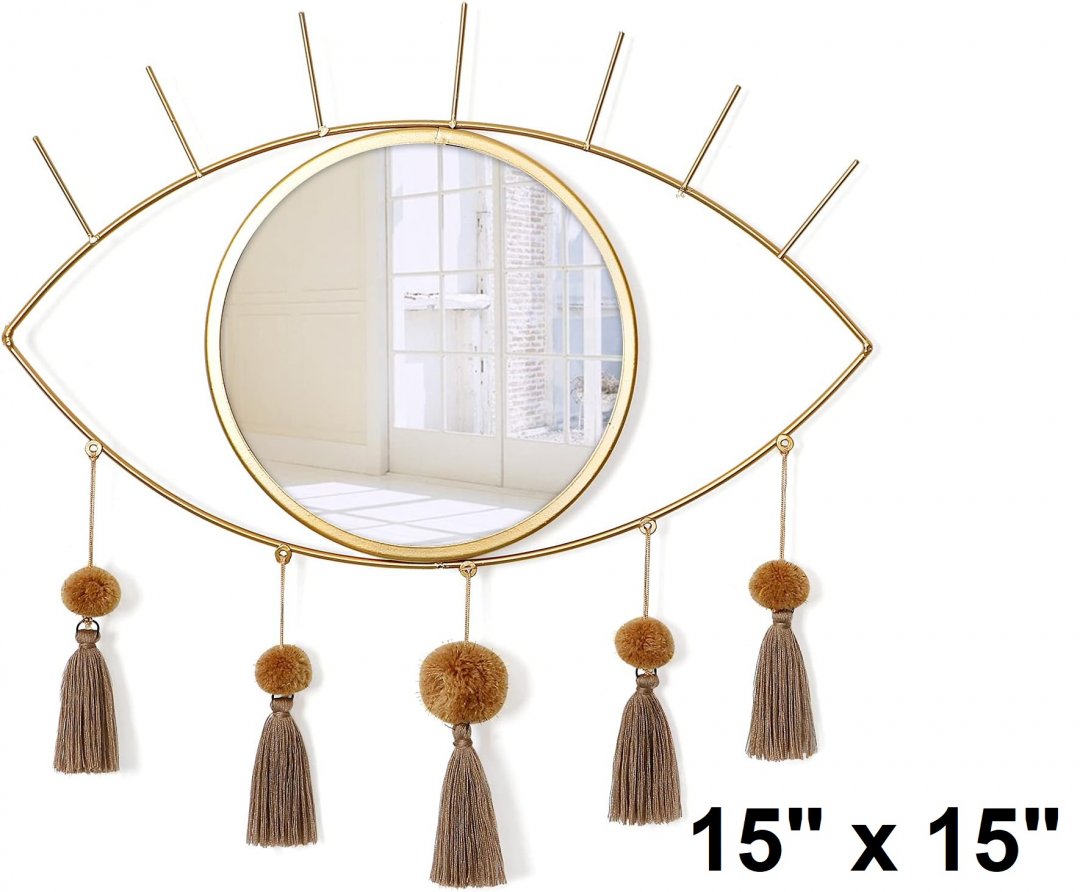 KHOYIME Evil Eye Wall Decorative Metal Mirror with Tassels - 15" x 15" - gold