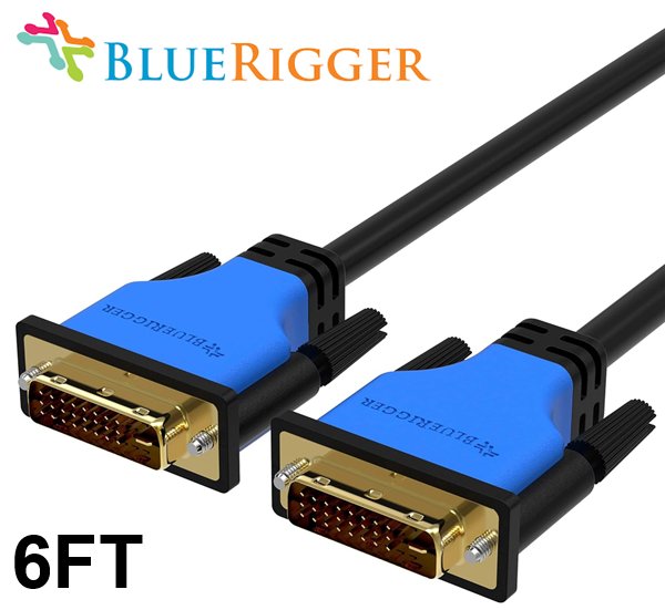 BlueRigger DVI to DVI Monitor Cable Dual Link Digital Video Cable - Male to Male - 6FT - BLUE/BLACK