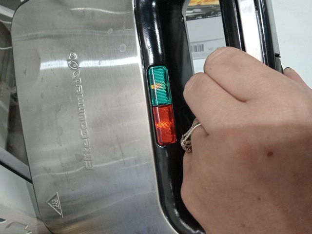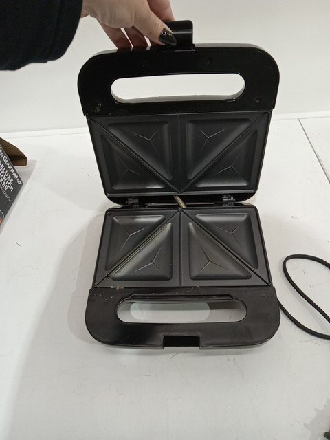 tested for power. there is some staining on the top of the maker as well as some food residue inside the sandwich maker.