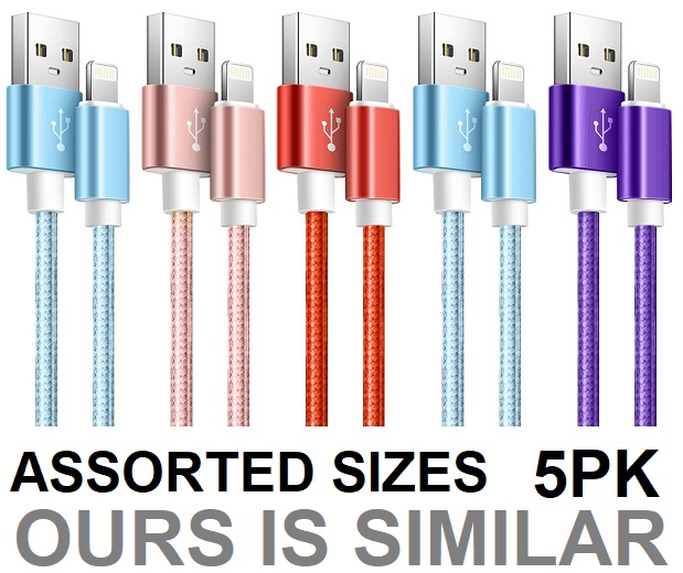 5pk usb to lightening cable for iphones - assorted sizes 9ft/6FT/3FT and colors