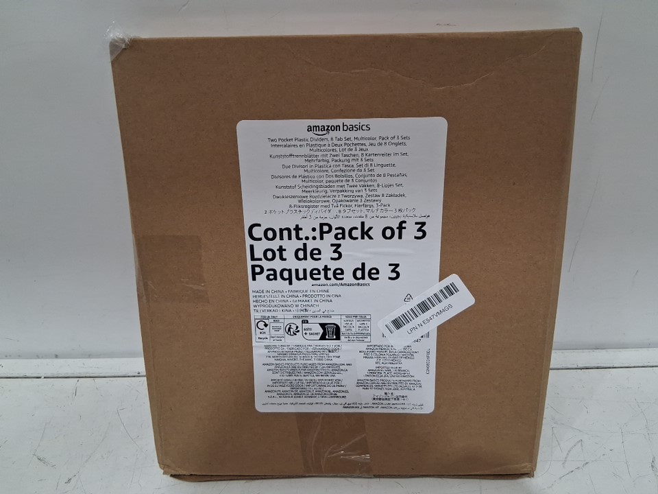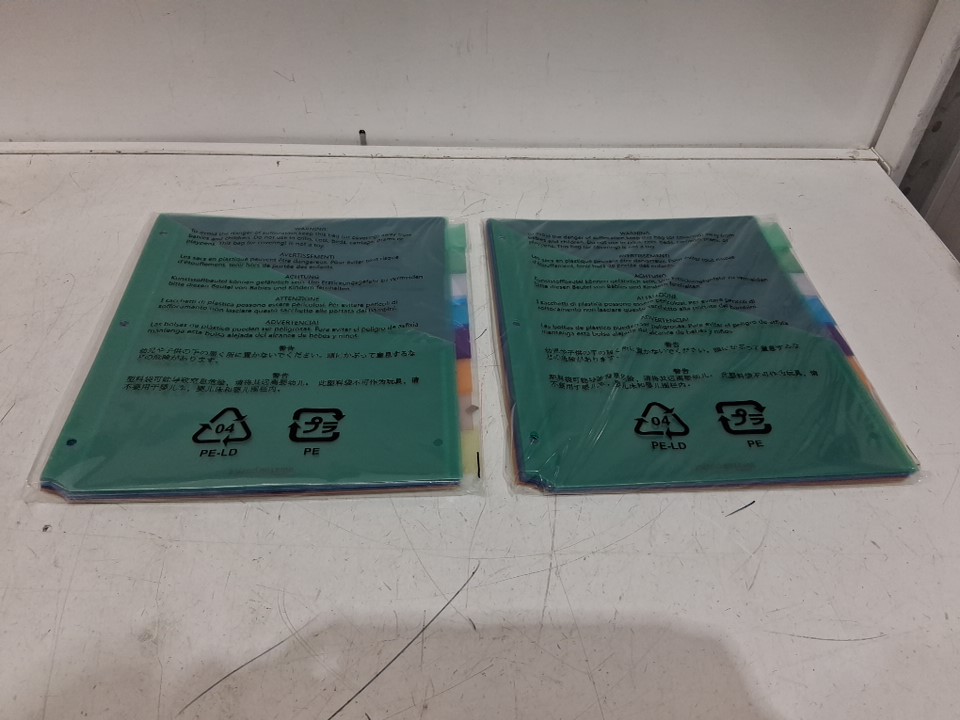 16pk AMAZON BASICS TWO POCKET PLASTIC DIVIDERS WITH 8 TABS, MULTICOLOUR - 16 SHEETS TOTAL